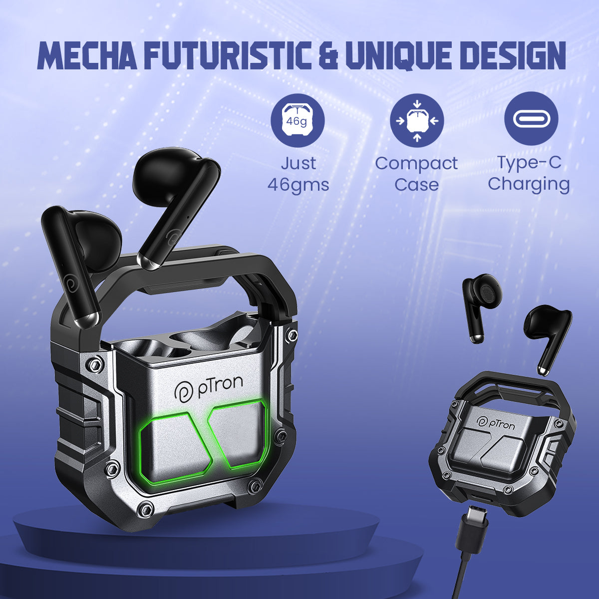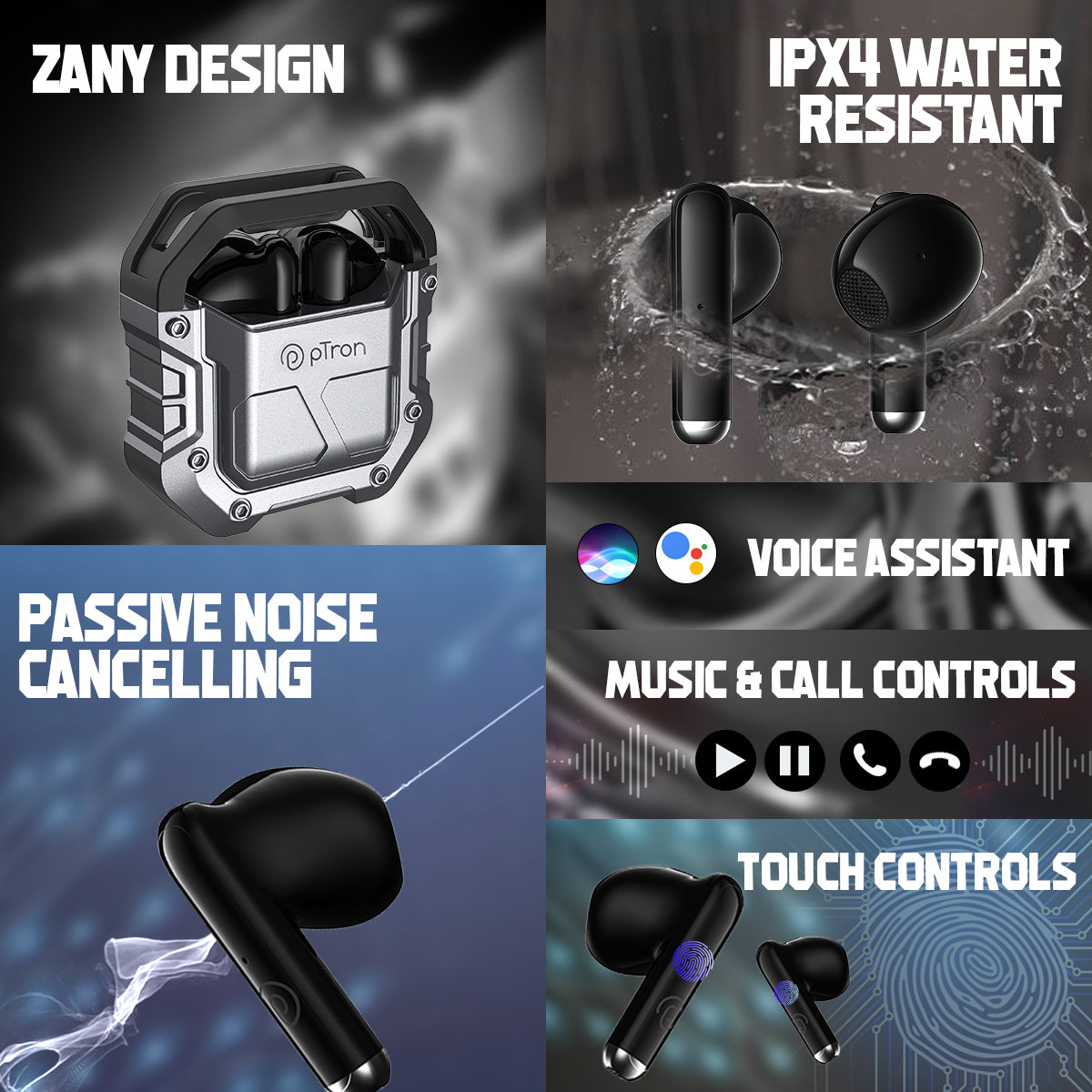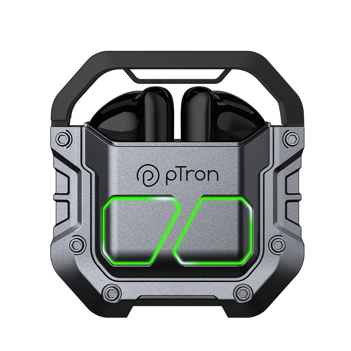 pTron Bassbuds Xtreme in-Ear TWS Earbuds with HD mic, 32Hrs Playtime, Bluetooth V5.3 Wireless Headphones, 13mm Dynamic Driver, Stereo Calls, Deep Bass, IPX4 & Type-C Fast Charging (Grey & Black)
