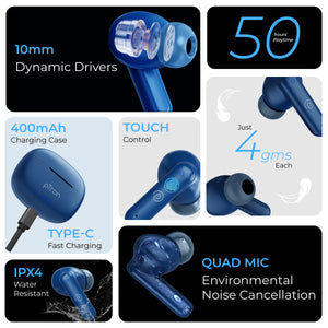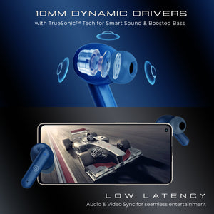 pTron Basspods 281 In-Ear True Wireless Stereo Bluetooth Earbuds (Black/Blue) Product Description: In-ear True Wireless Bluetooth Headphones with Deep Bass, Touch Sensitive Earbuds & Dual Built-in HD Mic for Crystal...