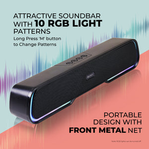 pTron Newly Launched Fusion One 14W Bluetooth Speaker 5.3 Mini Soundbar, 20Hrs Playback Time, 10 RGB Modes, Soundbar for Phones/TV/Laptops/Tablets, Multi Modes 3.5mm Aux/TF Card/USB/FM 14W Loud & Clear Sound:...
