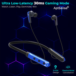 pTron Tangent Jade with 30ms Gaming Mode, Environmental Noise Cancellation HD Mic, 25Hrs Playtime, Punchy Bass, Bluetooth 5.2, Fast Charging, IPX4 Water Resistance & Voice Assistance (Blue & Black) Gaming...