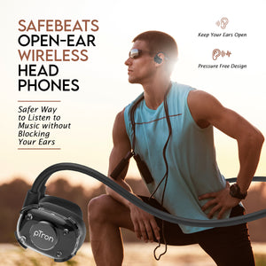 pTron Tangent Impulse Open-Ear Wireless Headphones with Mic, 10H Playtime, SafeBeats Design Ear Health & Comfort, Bluetooth 5.3 Earphones, Dual Device Pairing & Type-C Fast Charging & IPX5 Water Resistant...