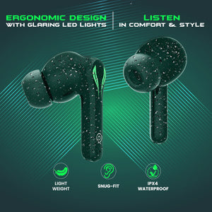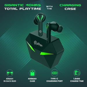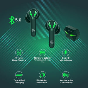 pTron Bassbuds Jade Truly Wireless Earbuds, 40ms Gaming Low Latency TWS, Stereo Calls, 40Hrs Playtime, Punchy Bass, in-Ear Bluetooth Headphones, Fast Type-C Charging & IPX4 Waterproof (Green) Gaming Wireless Headphones...