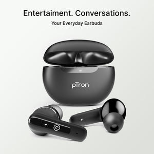 pTron Bassbuds Joy In-Ear TWS Earbuds with Stereo Sound, 34Hrs Playtime, Stereo Calls, Bluetooth V5.3 Headphone with Quick Pairing, Touch Control, Voice Assist, Type C Charging & IPX4 (Black) TWS...