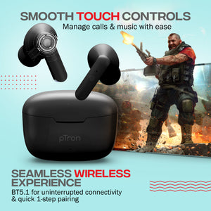pTron Bassbuds Jade Gaming True Wireless Headphone with Deep Bass, Dual Mic, Passive Noise Cancellation (Black) Product Description : 4 Quick Taps on the Touch Sensitive Area of Either Earbud...
