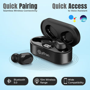 pTron Bassbuds Pro (New) in-Ear True Wireless Bluetooth 5.1 Headphones with Deep Bass, Touch Control Earbuds, IPX4 Water/Sweat Resistance, Digital Display Case, Earphones with Built-in Mic - (Black) Product DescriptionĀ :...