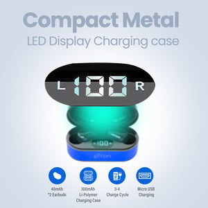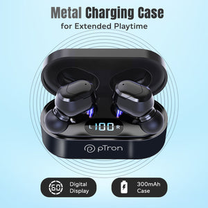 pTron Bassbuds Pro (New) True Wireless Bluetooth 5.1 Headphones with Deep Bass, Touch Control Earbuds, IPX4 Water/Sweat Resistance, Digital Display Case, Earphones with Built-in Mic - (Black & Blue) Product...