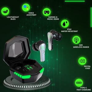 pTron Bassbuds Rush True Wireless in-Ear Earbuds with Gaming Low Latency, 35Hrs Playtime, Punchy Bass, ENC Stereo Calls, BT5.3 Earphones, 1-Step Pairing, Voice Assistant & IPX4 (Black) Ultra-Low Latency Gaming...