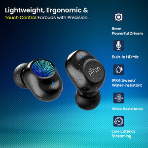 pTron Bassbuds Rush In-Ear TWS Earbuds with Mic, Gaming 40ms Low Latency, TruTalk AI-ENC Calls, 35H Playtime, Bluetooth 5.3 Headphones, Voice Assist, Type-Fast Charge & IPX4 Water Resistant (Bold Black)...