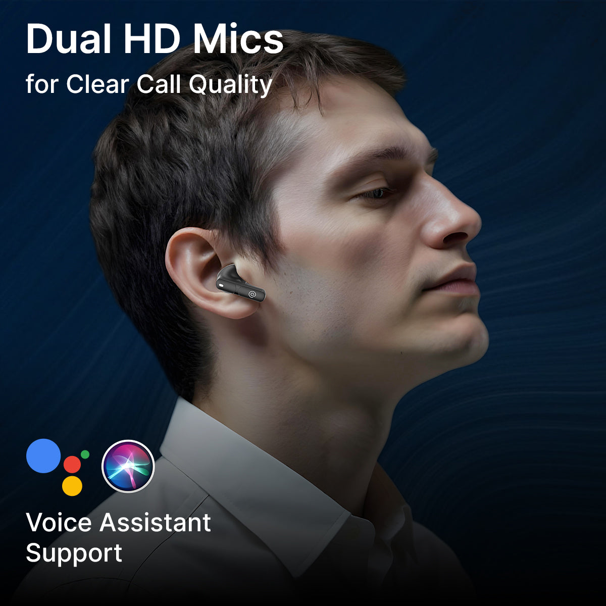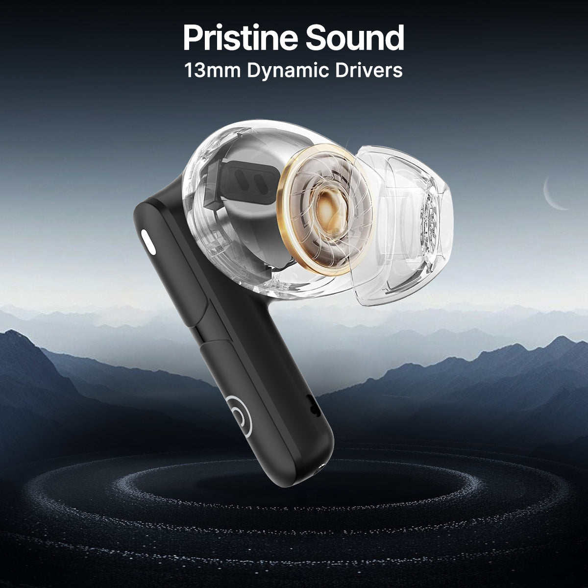pTron Bassbuds Blaze in-Ear TWS Earbuds w/ 13mm Drivers, 50Hrs Playtime, AI-ENC Clear Calls, Bluetooth V5.4 Wireless Headphones, Touch Control, Voice Assistant, Type C Charging & IPX5 (Black & Grey)