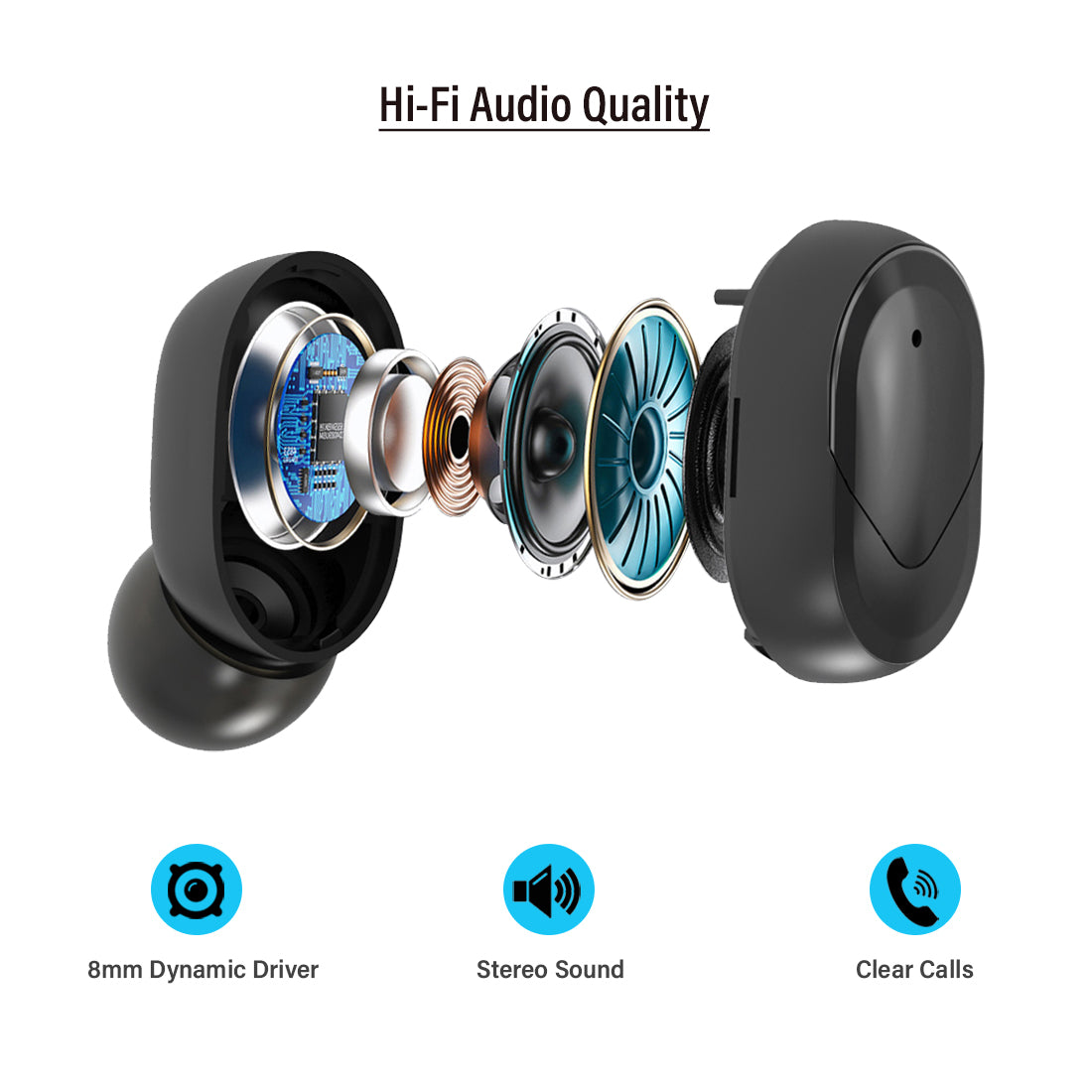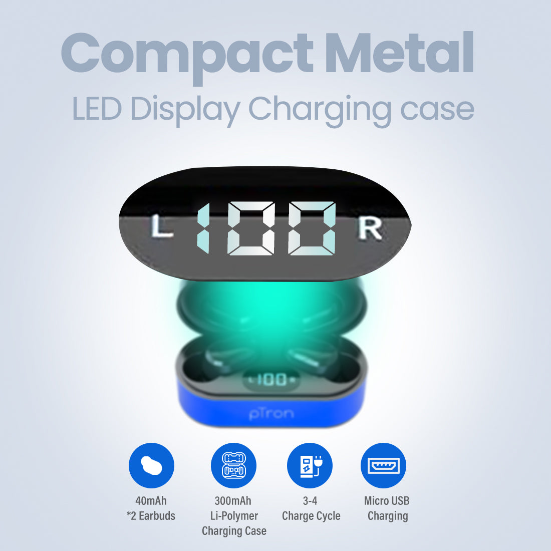 pTron Bassbuds Plus in-Ear TWS Earbuds with HD Mic, Bluetooth 5.0 Headphones, Stereo Sound, Clear Calls, 28Hrs Playback Time, Voice Assistant, IPX4 Water Resistant & Fast Charging (Electric Blue)