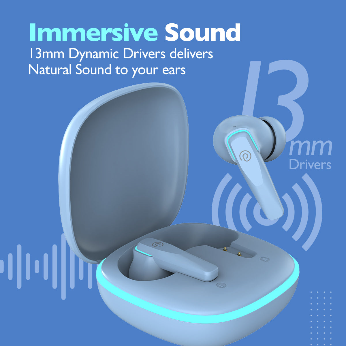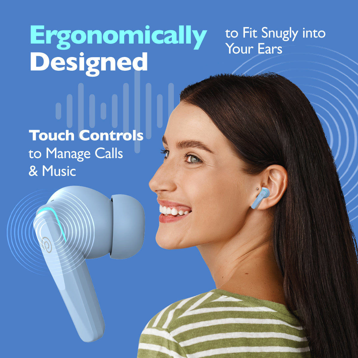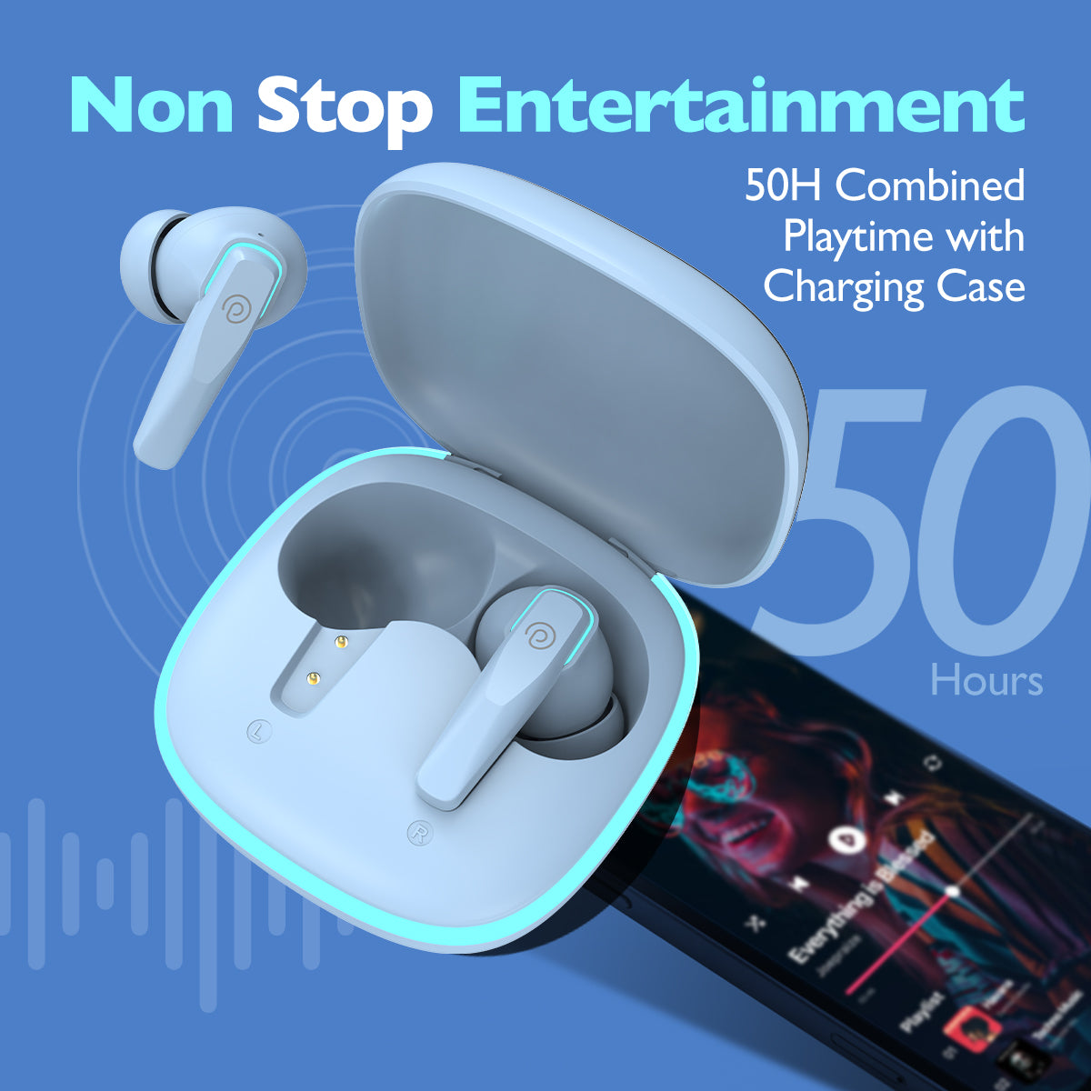 pTron Bassbuds Xcite in-Ear TWS Earbuds with Quad Mic & ENC Calls, 50H Playtime, 40ms Low Latency Sync, Bluetooth 5.3 Headphones, Type-C Fast Charging & IPX5 Water Resistant (Blue)