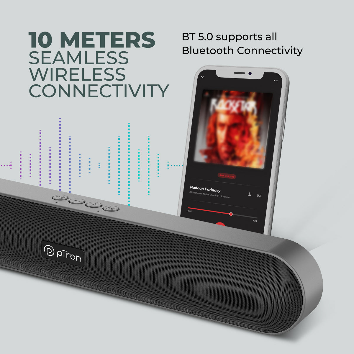 pTron Fusion Evo v3 BT Soundbar (Grey)