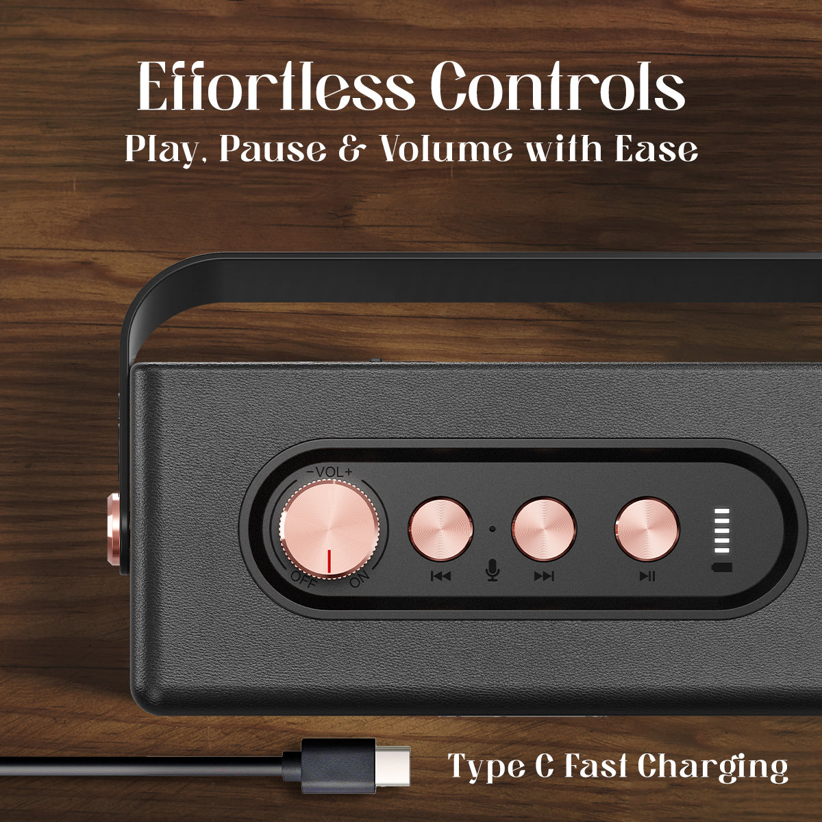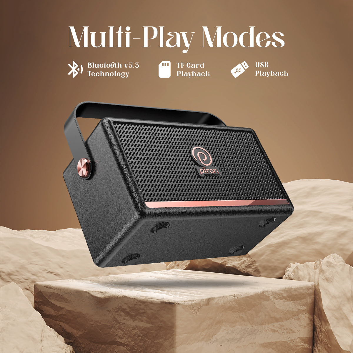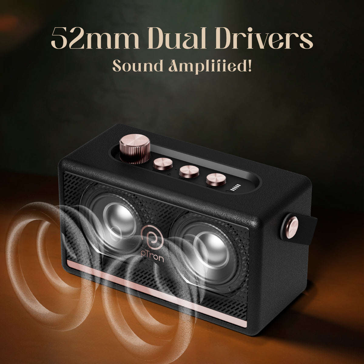 pTron Fusion Pro Retro Signature 20W Bluetooth Speaker with Pristine Sound, 8 Hours Playtime, Dual Drivers, Playback via BT5.3/USB/TF Card, Easy Controls, Portable Speaker & Type C Charging (Black)