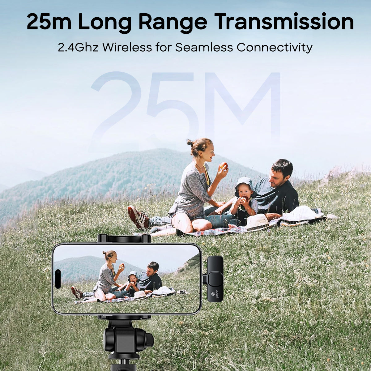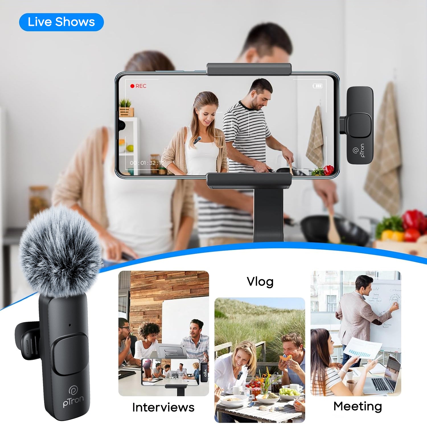 pTron KWM-1 Omnidirectional Type C Wireless Microphone w/DSP Noise Cancellation, Plug & Play, 25m Wireless Range, Lapel Wireless Collar Mic for Video Recording, Supports Type C Android, iPhone (Black)