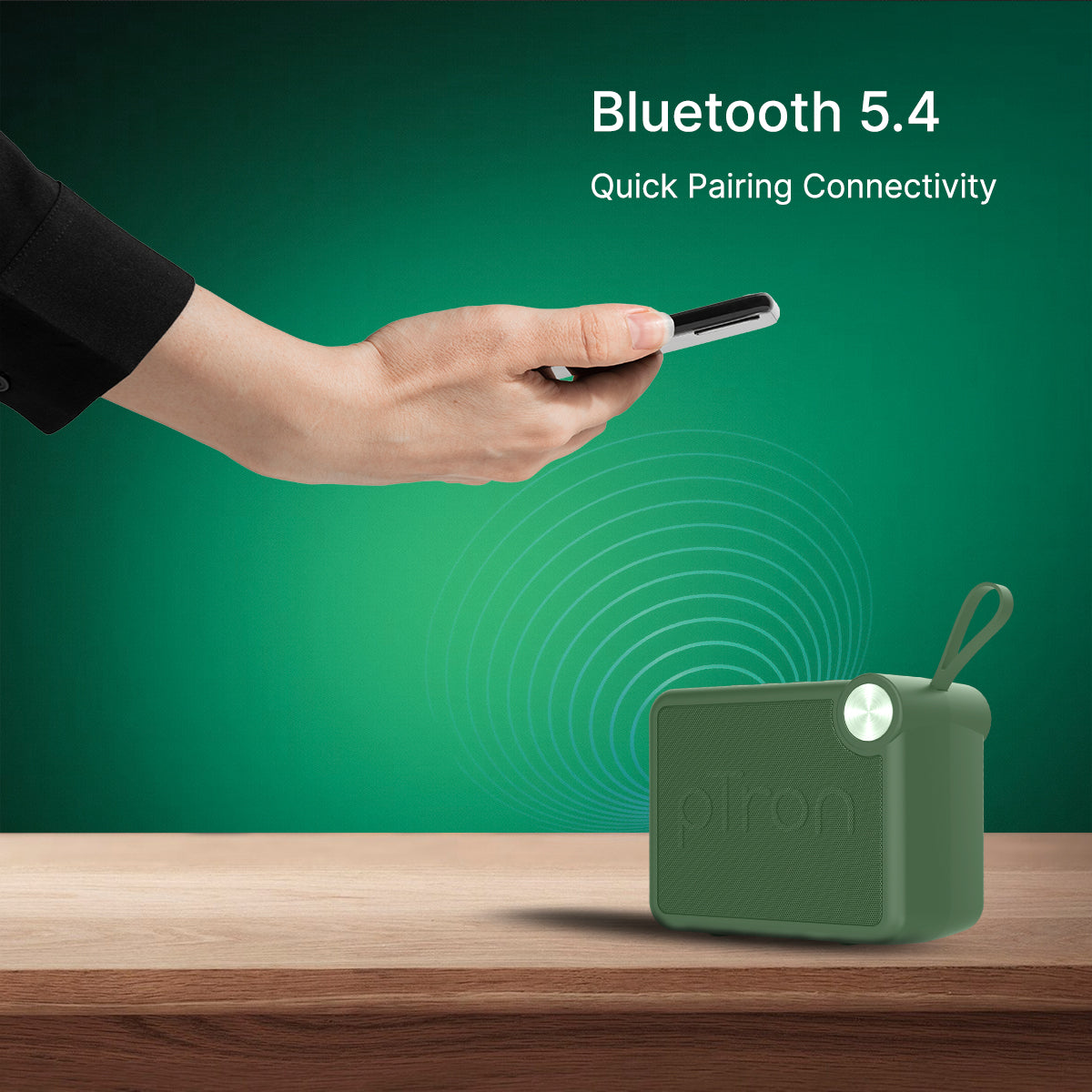 pTron Musicbot Pop V2 7W Bluetooth Speaker with Pristine Sound, Alluring Bass, 6hrs Playtime, Compact Size, TWS Feature, Multi-Playback Modes-BT5.4/TF Card/USB, Metal Grill & Type-C Charging (Green)