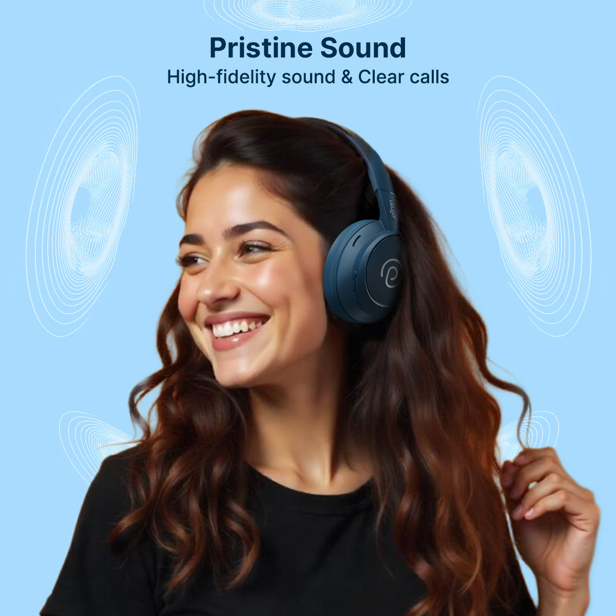 pTron Studio Evo 70hrs Playtime Wireless Over Ear Headphones with HD Mic, Low-Latency Game/Movie/Music Modes, Punchy Bass, BT5.3, Dual Device Pairing, Voice Assistant & Type-C Fast Charging (Blue)