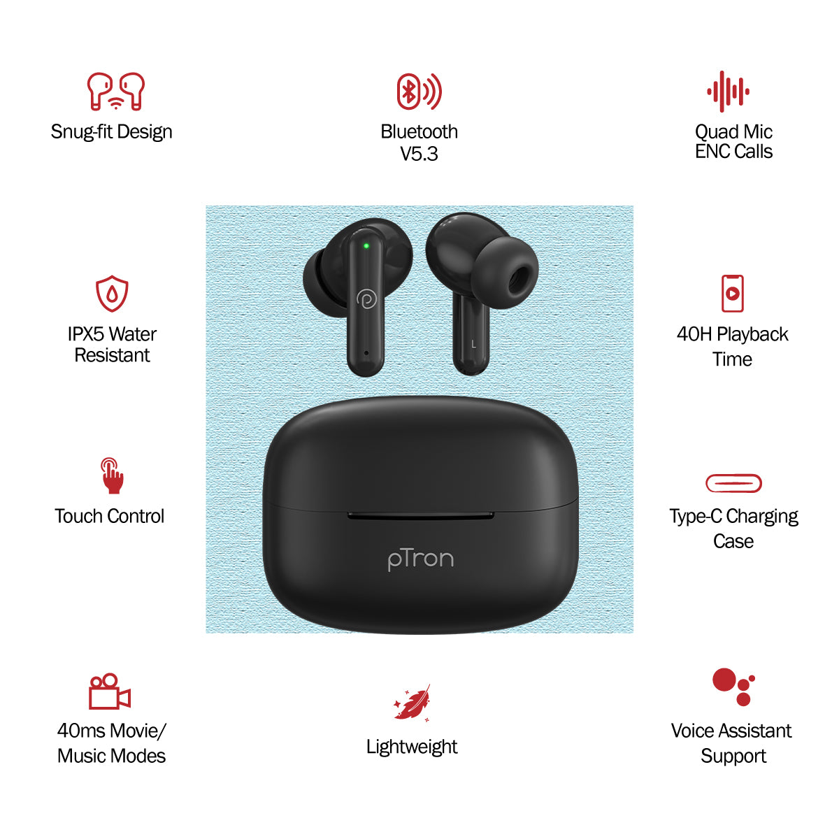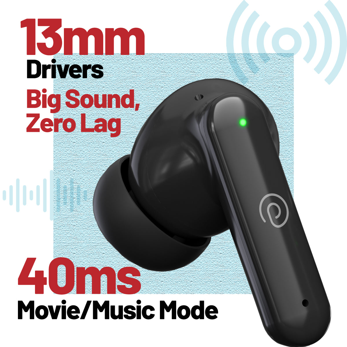 pTron Zenbuds X1 TWS Earbuds with Mic (Jet Black)